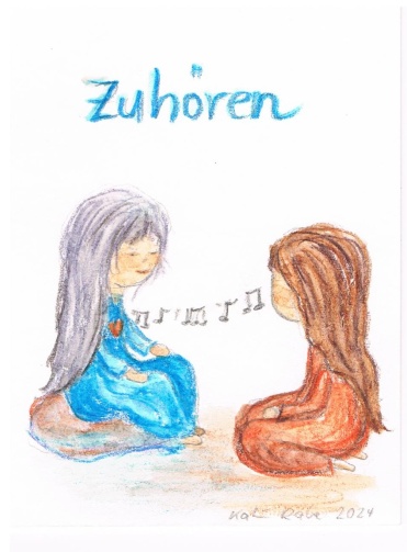 Original Aquarell-Zeichnung zur Achtsamkeitskarte "Zuhören"