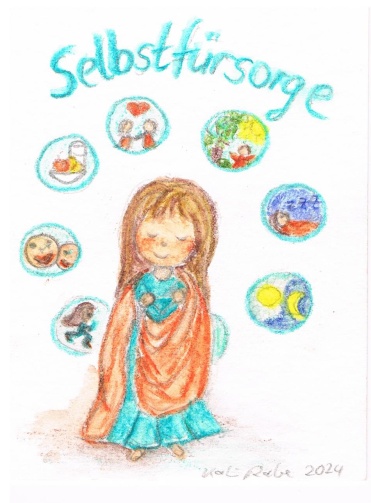 Original Aquarell-Zeichnung zur Achtsamkeitskarte "Selbstfürsorge"